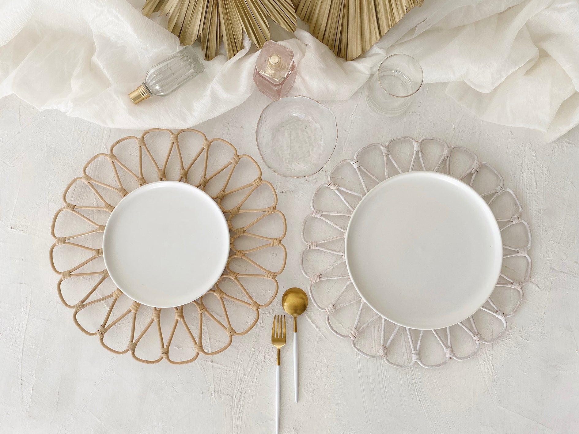 Ayu White Washed Flower Round Rattan Placemat