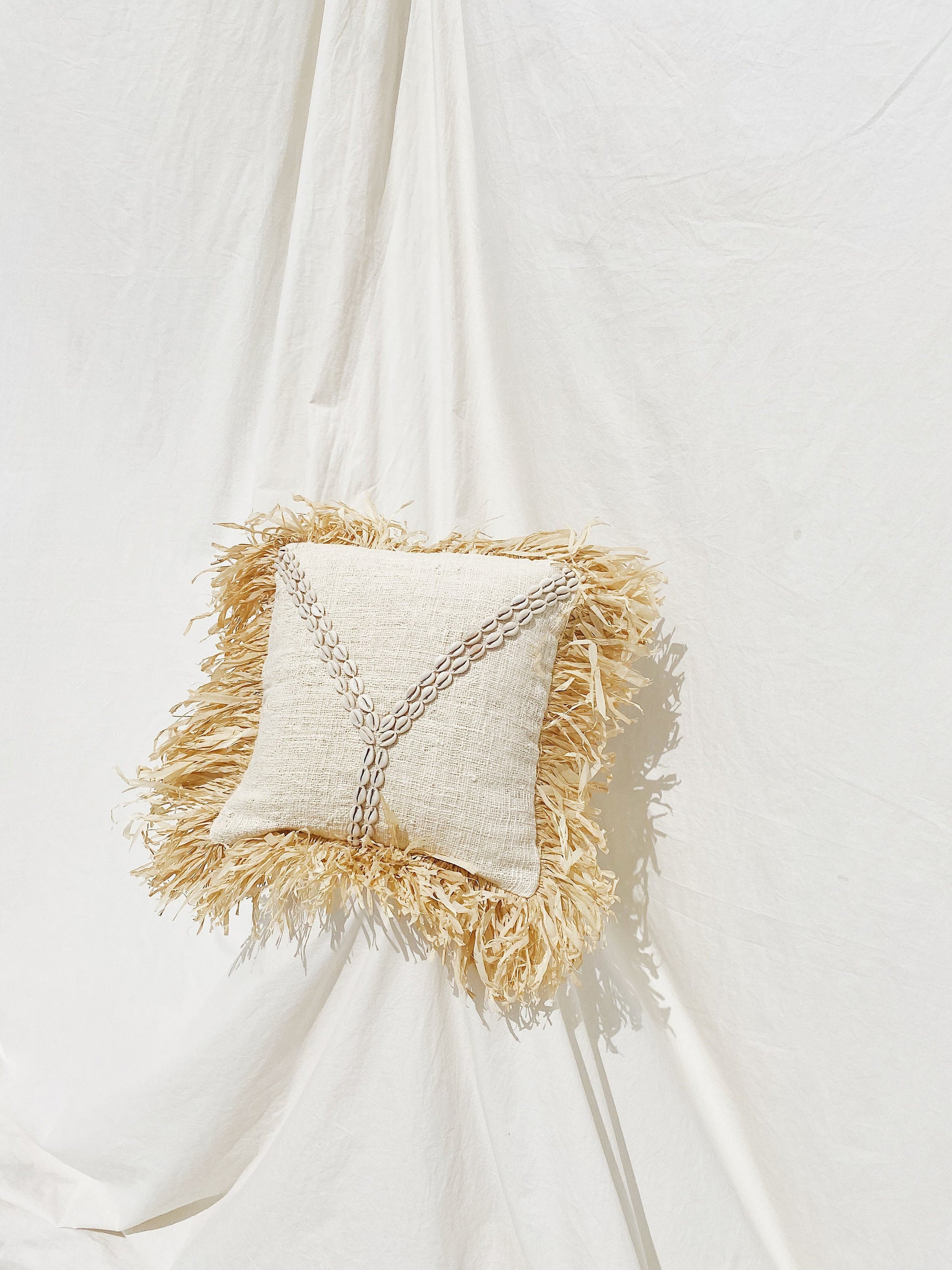 Natural Hand Stitched Cushion Cover with Hidden Zipper ( Without Pillow Inside ) made from 100% Natural Cotton, Hand Stitched technique, and Shell details.
