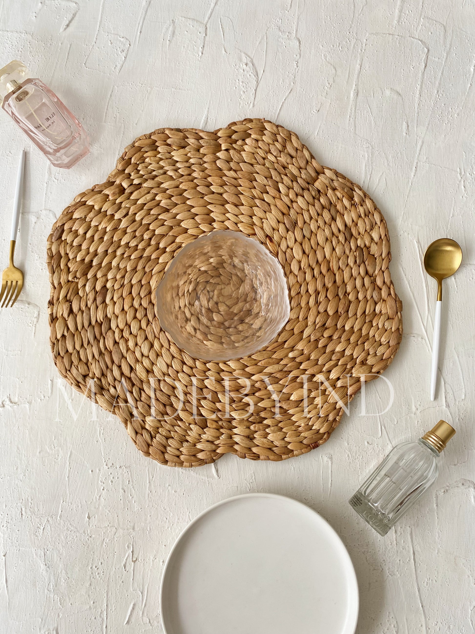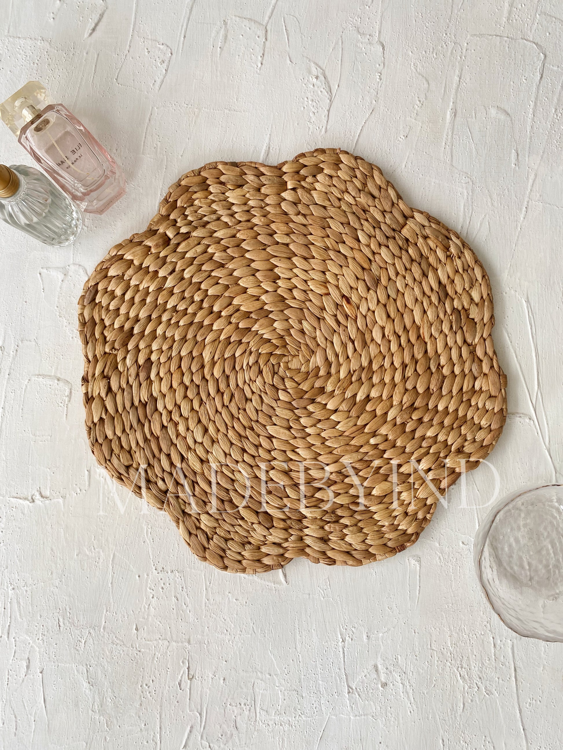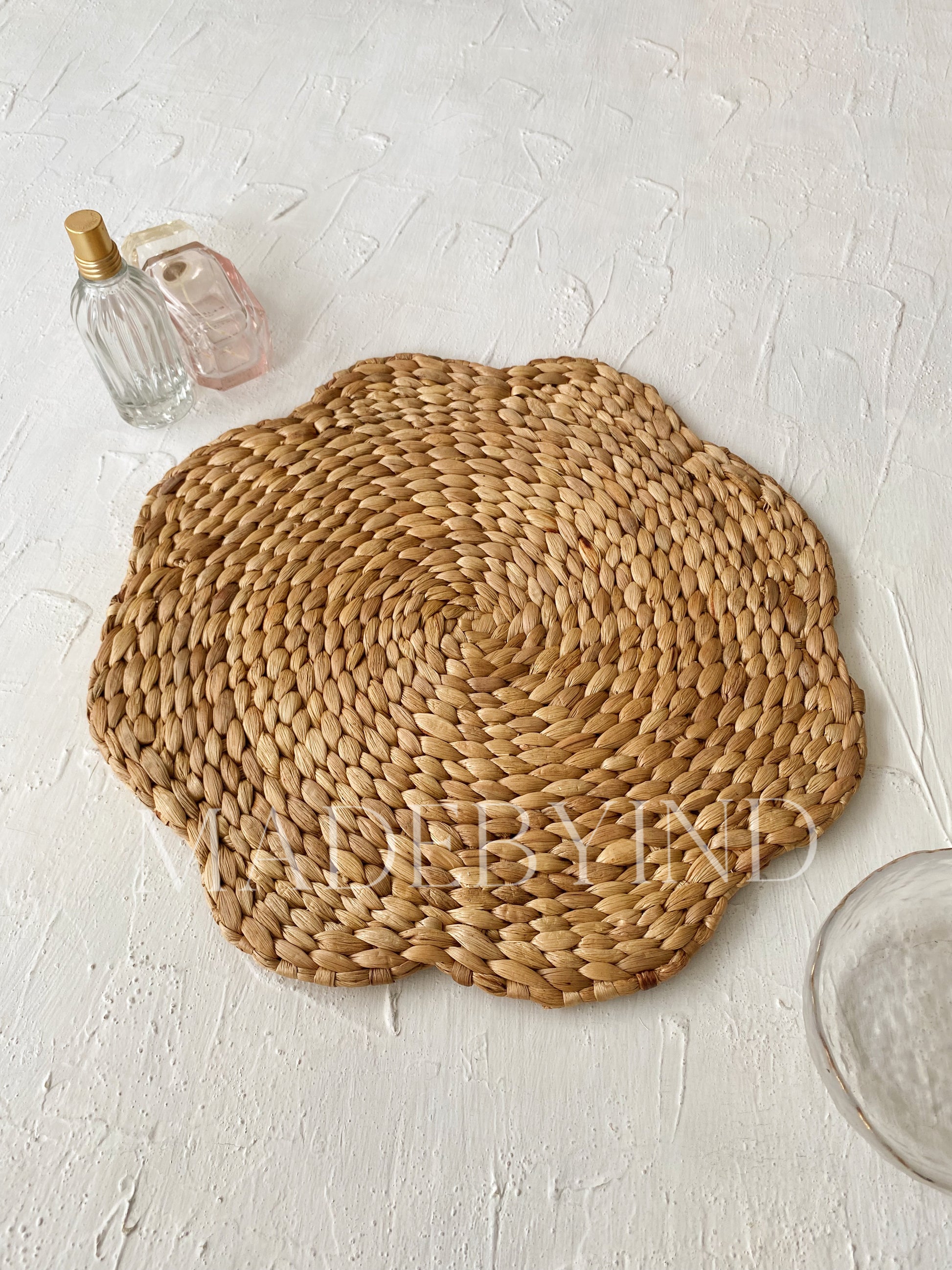Natural Weave multipurpose wall decoration or table placemats made from Water Hyacinth. Feature with hand woven with the local artisan with a flower pattern.