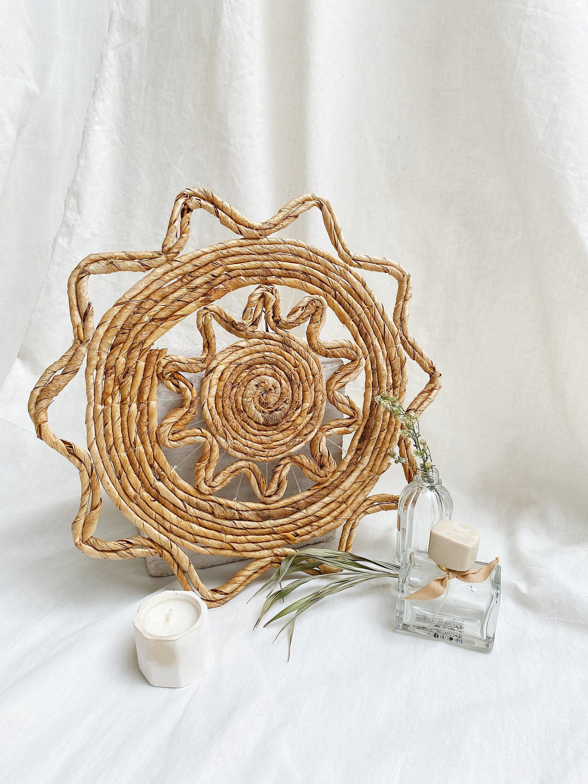#Gayo Banana Star Natural Placemat and Wall Decor, Bohemian style decoration, Hanging Wall Decoration, Banana Bark Natural, Housewarming Gift, Bohemian Banana Bark Fringe Wall Decor, Hanging Wall Natural Decor, Fringe Hanging Wall Decor, Boho Decoration, Natural Round Wall Basket, Banana Bark material, Banana Wall Decoration, Natural Hanging Wall, Bohemian Decoration, Boho Theme, Boho style home, Natural Hand Weave Decoration, Wicker Straw Wall Decor, Natural Decoration, Natural material, Rustic and Eclectic Home Style, Bohemian Rustic Wedding Decor, Natural Wall Basket, Round Wall Decor, Natural Hanging Wall, Set of Wall Basket, Wall Decor Set