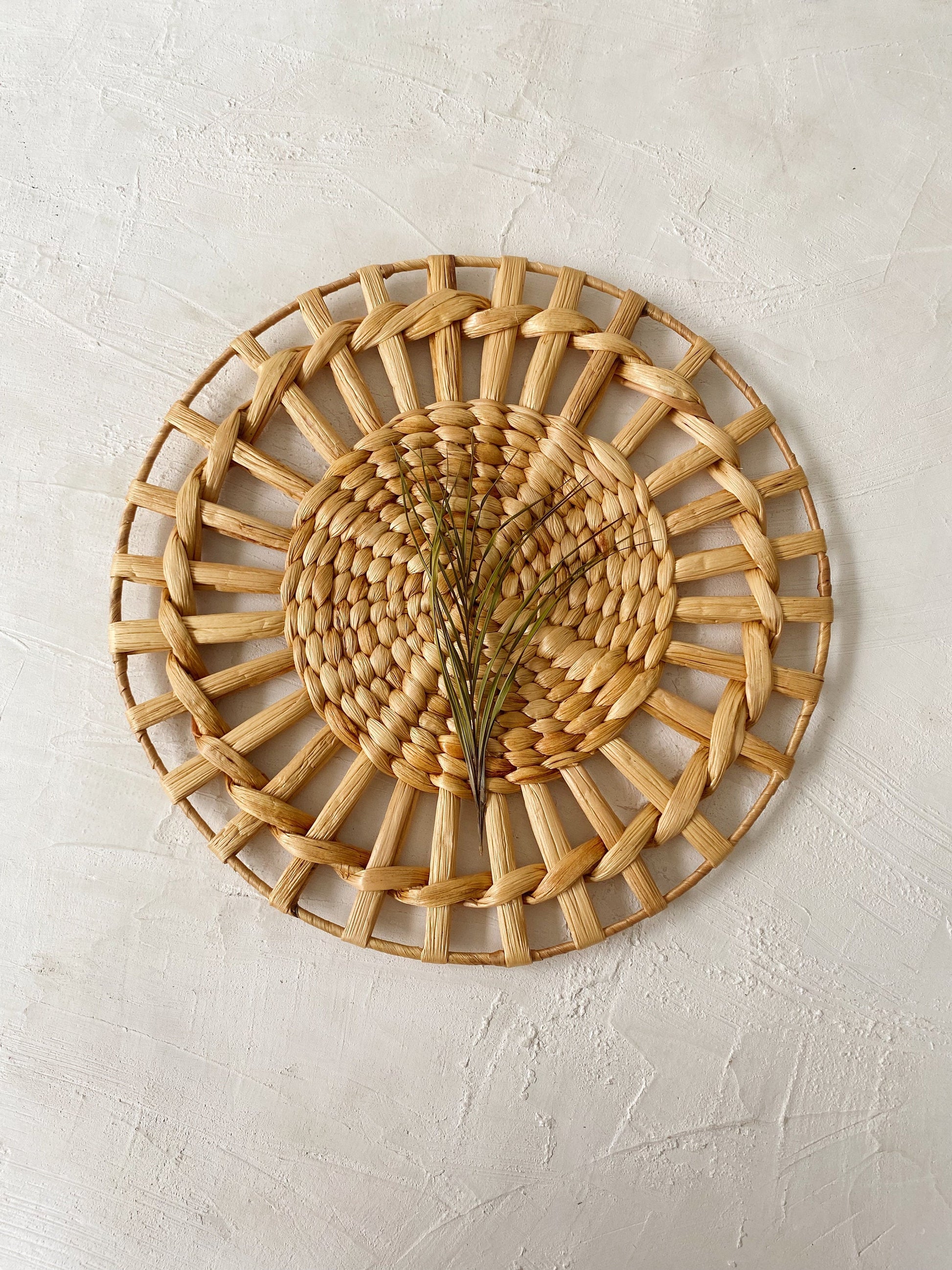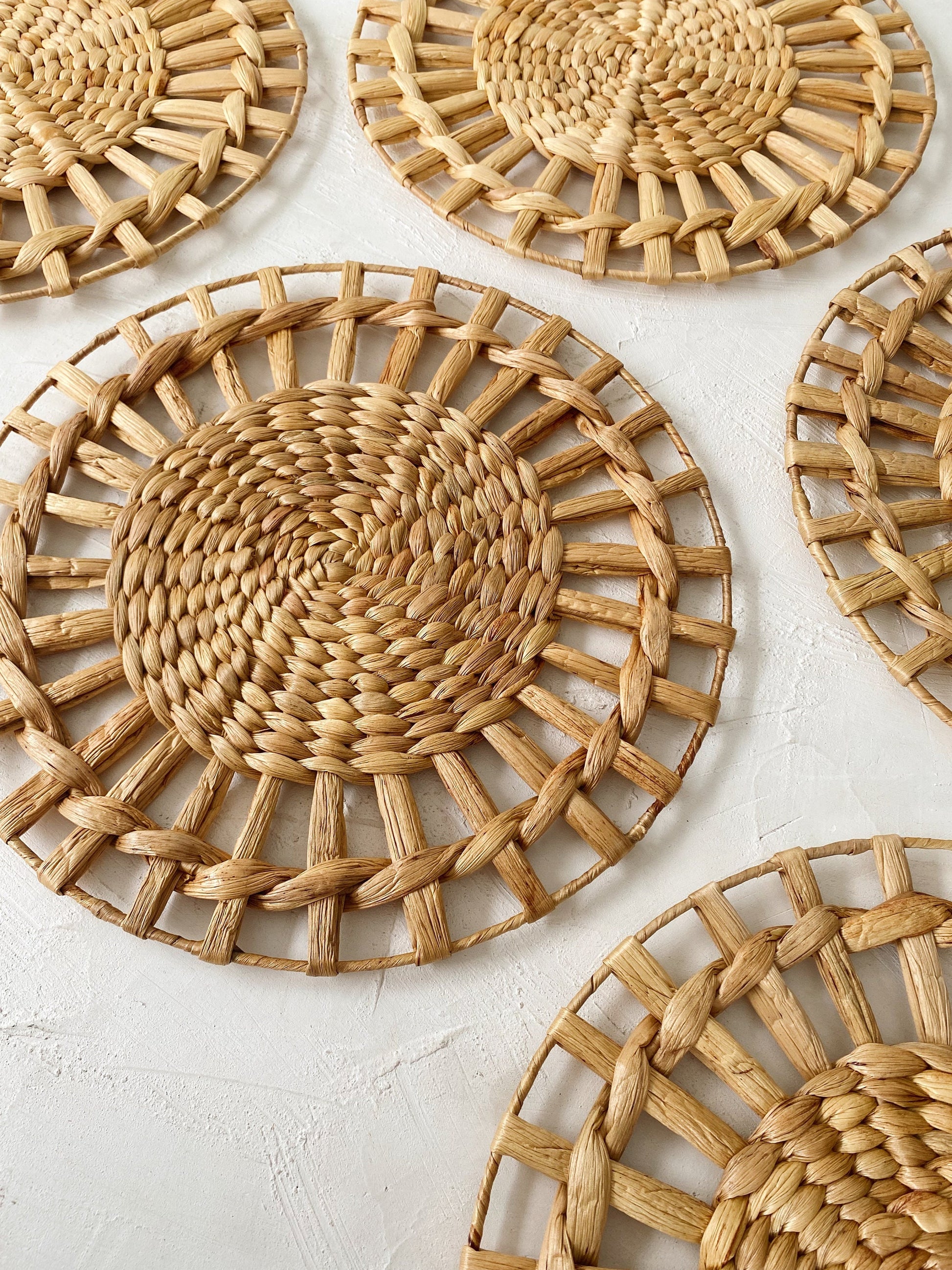 Natural Weave multipurpose wall hanging decoration or table placemats made from Water Hyacinth. Feature with hand woven with the local artisan with round design and a star pattern.
