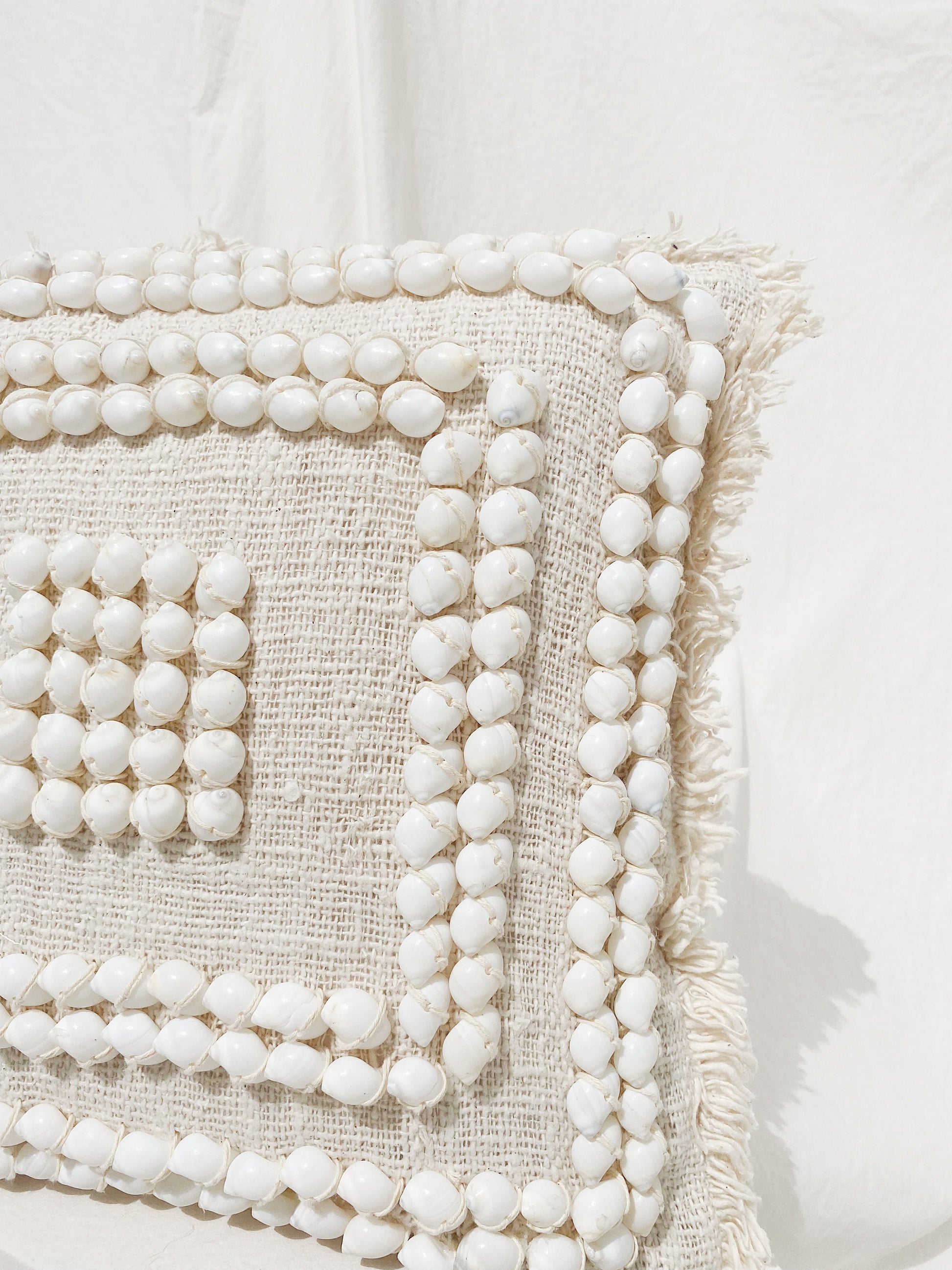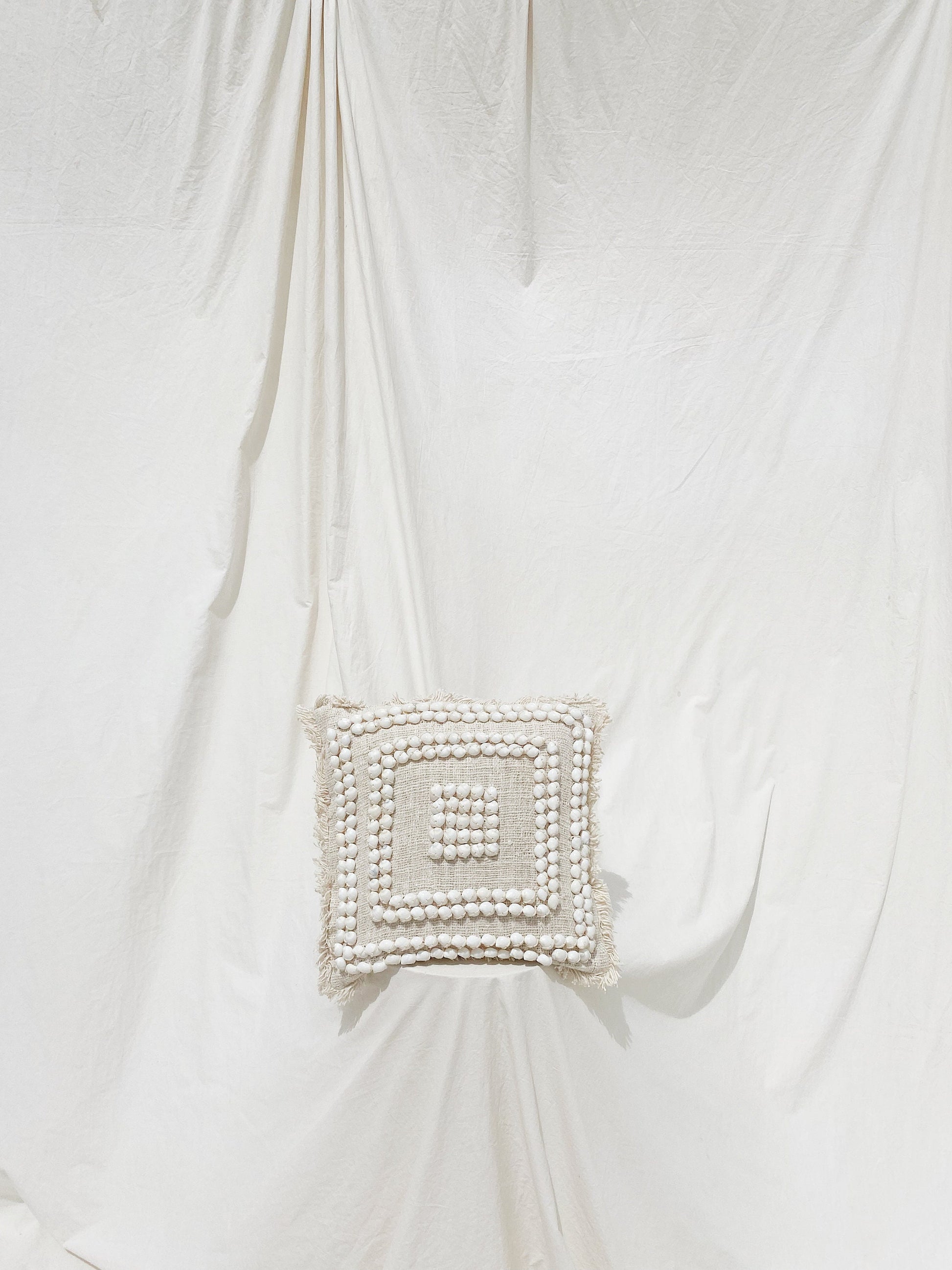 Natural Hand Stitched Cushion Cover with Hidden Zipper ( Without Pillow Inside ) made from 100% Natural Cotton, Hand Stitched technique, and Shell details.