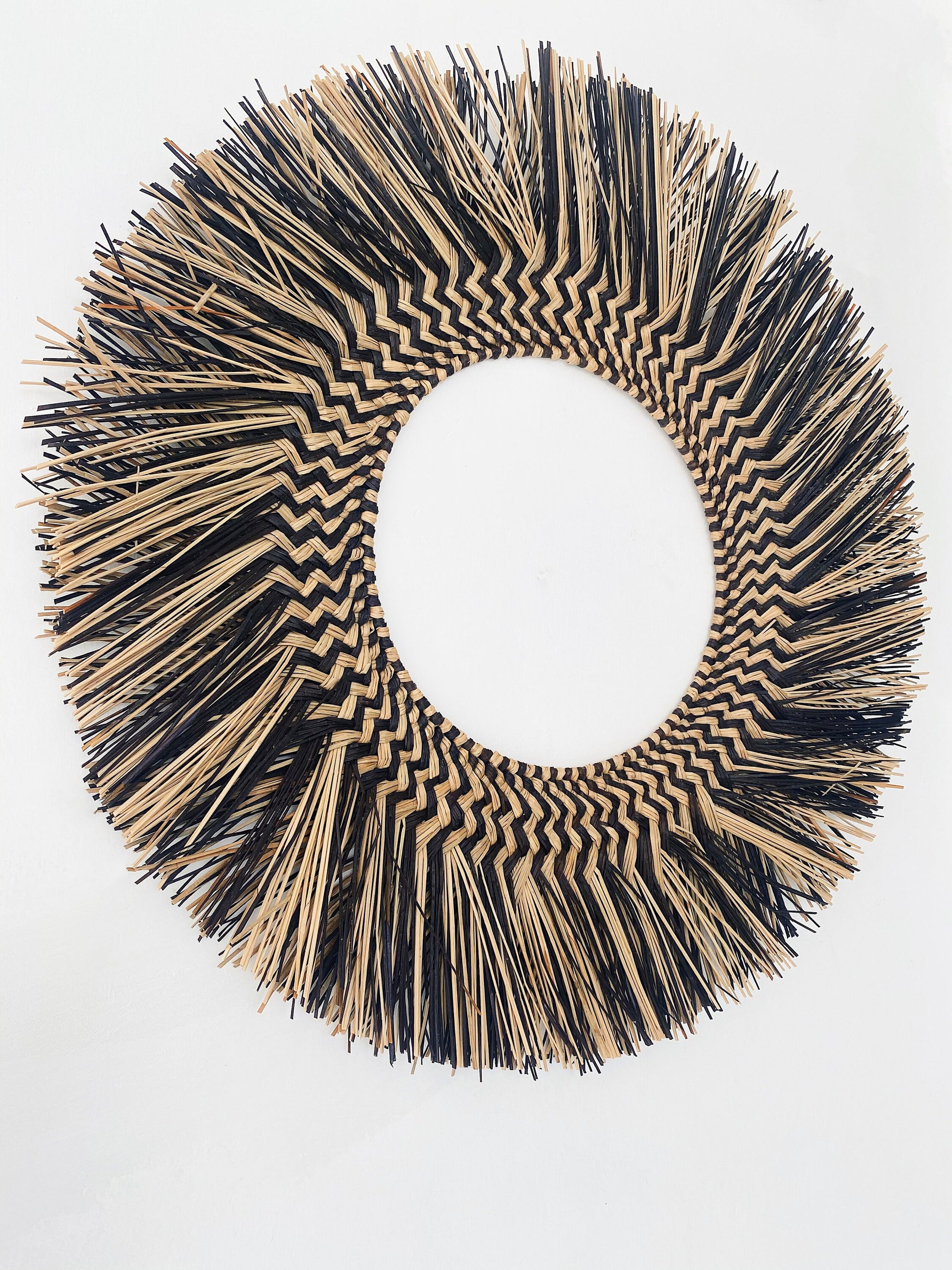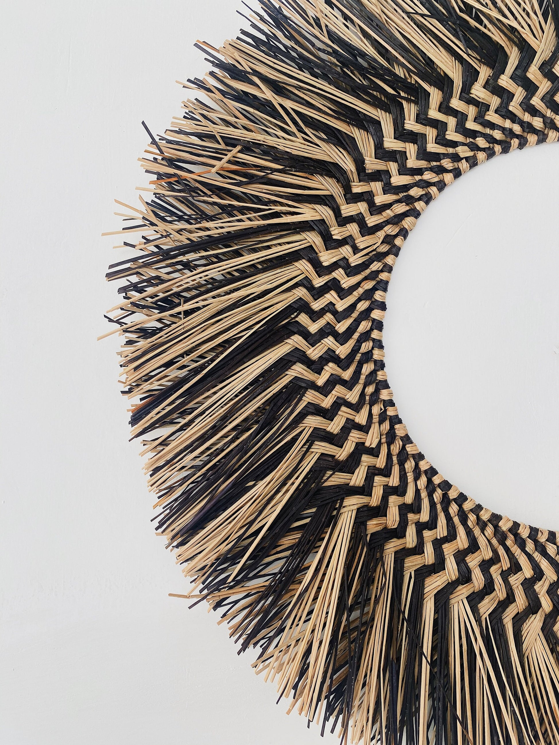 Natural Weave multipurpose Hanging Wall Decoration made from mendong with big round design.