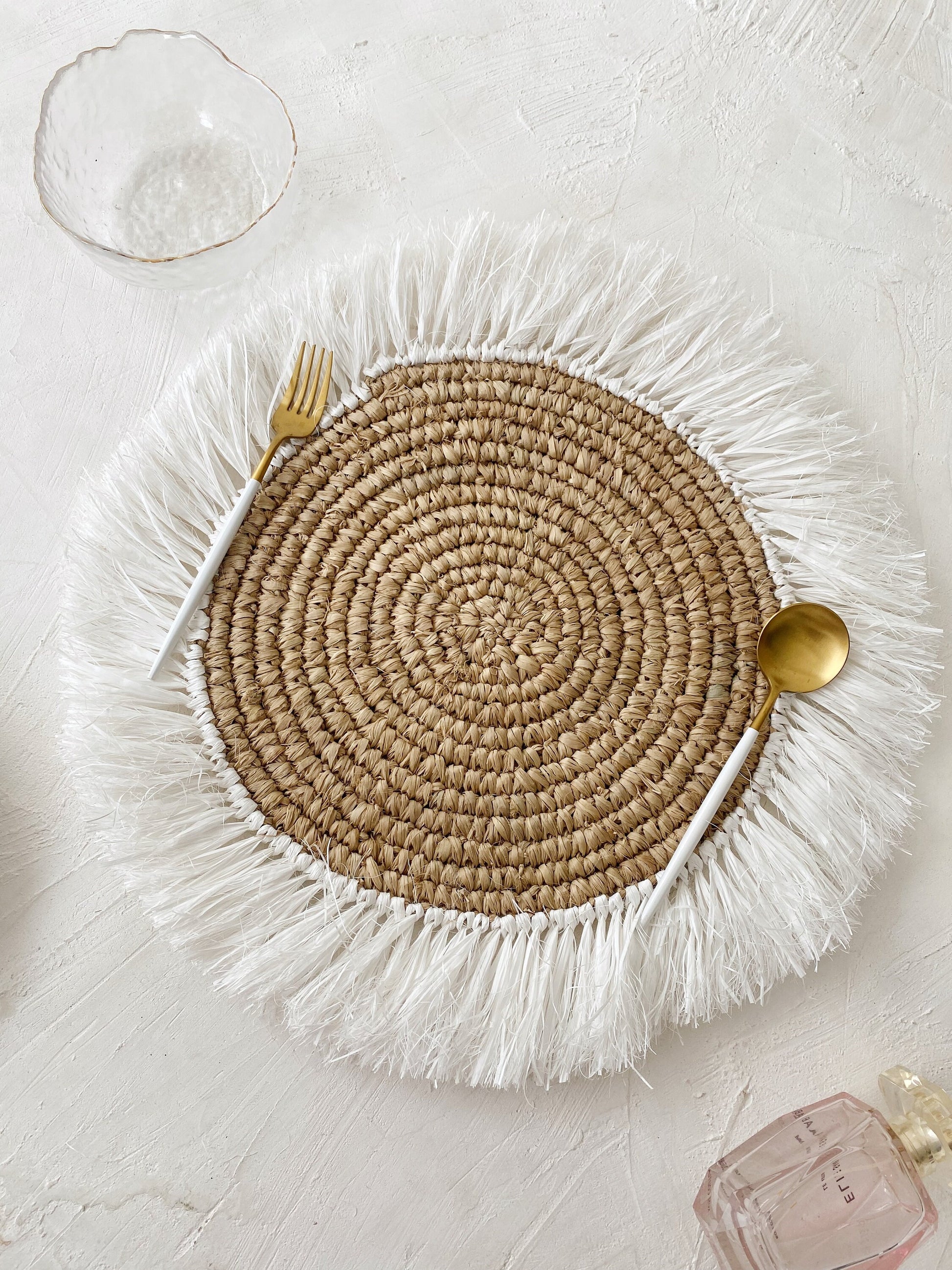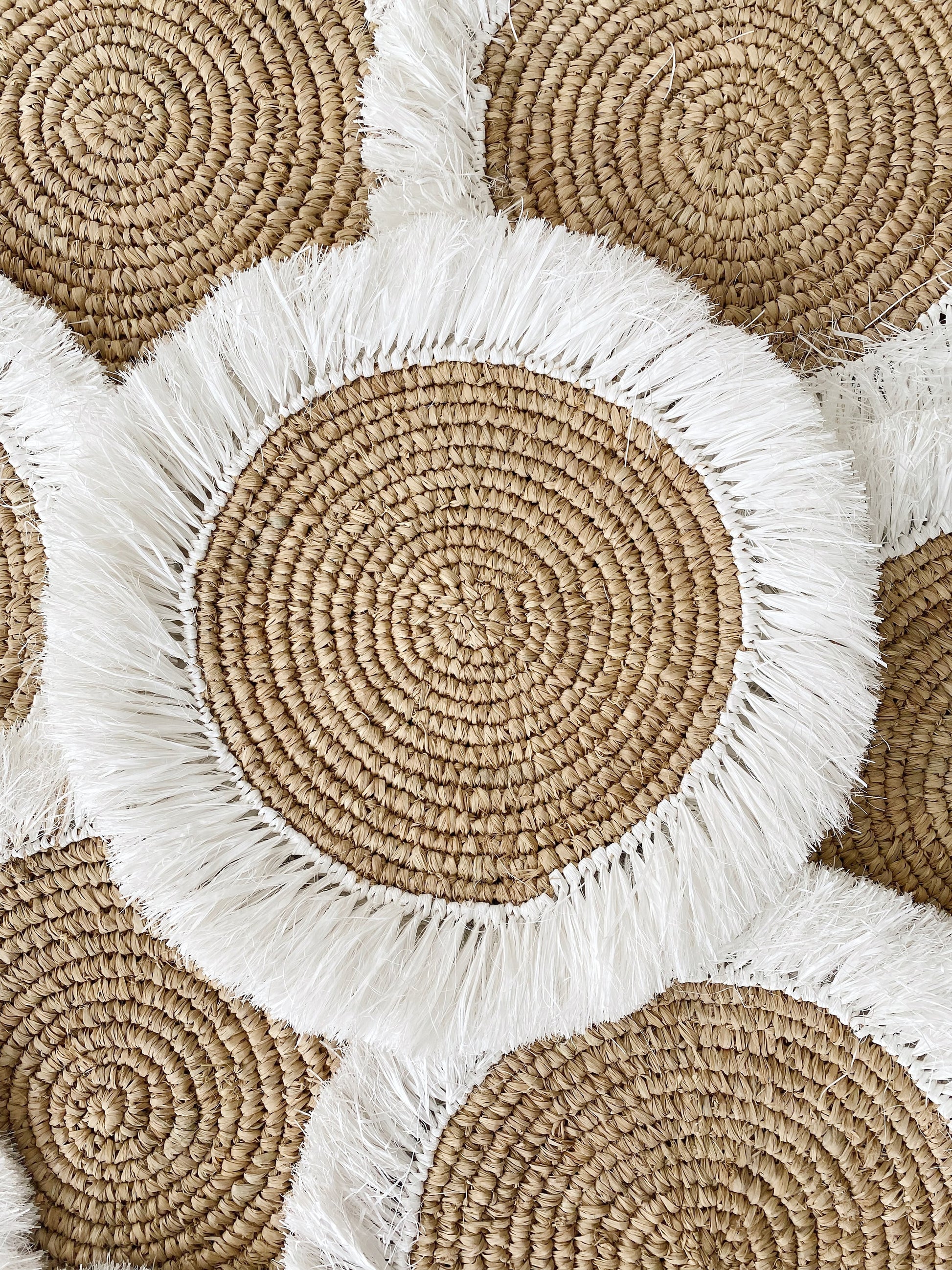 #Natural White Fringe Placemats, Boho Placemats, White Fringe Placemats, Handwoven Placemats, Table decor pad, Straw Placemats, Wicker Pads, Round Placemat, Natural Placemats, Boho Placemats, Fringe Placemats, Raffia Placemats & Table Charger,Placemats for Round Table,Handwoven Placemats, Woven Braided Tablemats, Natural Coaster, Hand Woven Placemats, Table decor mats, Wicker Pads, Natural wicker placemats, Mat heat resistant, Braided Tablepad, Decorative hanging wall, Hanging wall decoration, Home Decor, Wall basket, Natural Wall Art, Boho Wall Decor, Rustic Placemat, Event Placemats, Raffia placemats, Braided Table Center, Bali Table Heater