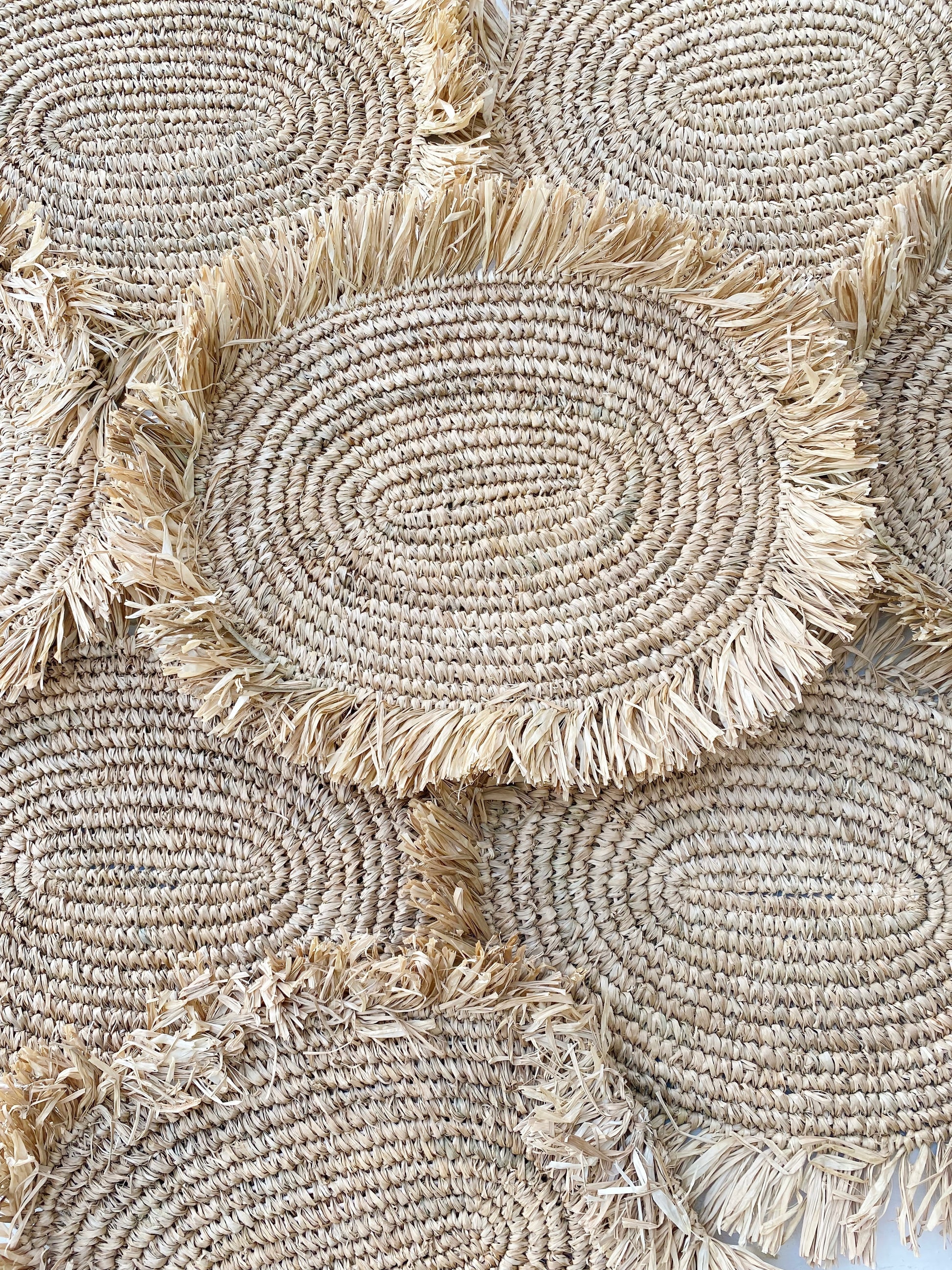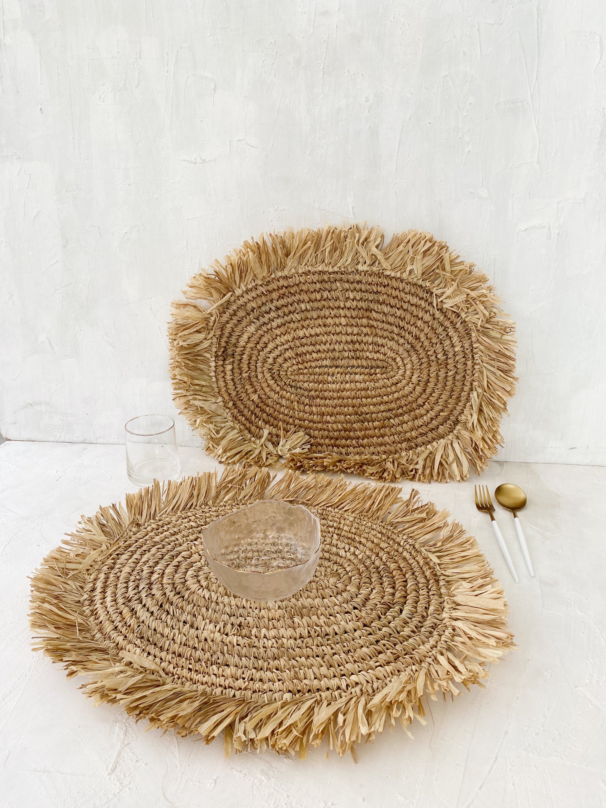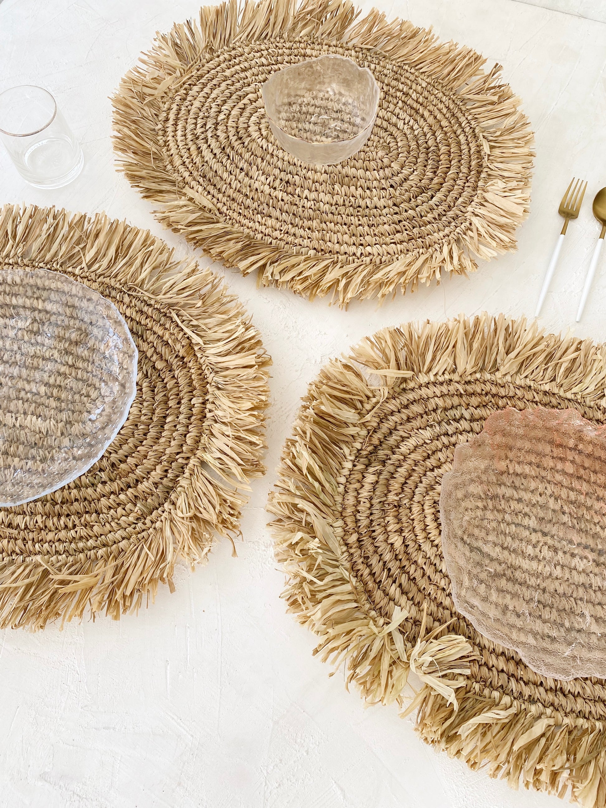 #Oval Raffia Fringe Placemats, Boho Fringe Table Mats, Fringe Placemats, Raffia Placemats & Table Charger, Rustic and Farmhouse Table Scape, Woven Braided Tablemats, Natural Coaster, Hand Woven Placemats, Table decor mats, Wicker Pads, Natural wicker placemats, Mat heat resistant, Braided Tablepad, Decorative hanging wall, Hanging wall decoration, Home Decor, Wall basket, Natural Wall Art, Boho Wall Decor, Rustic Placemat, Event Placemats, Raffia placemats, Braided Table Center, Bali Table Heater