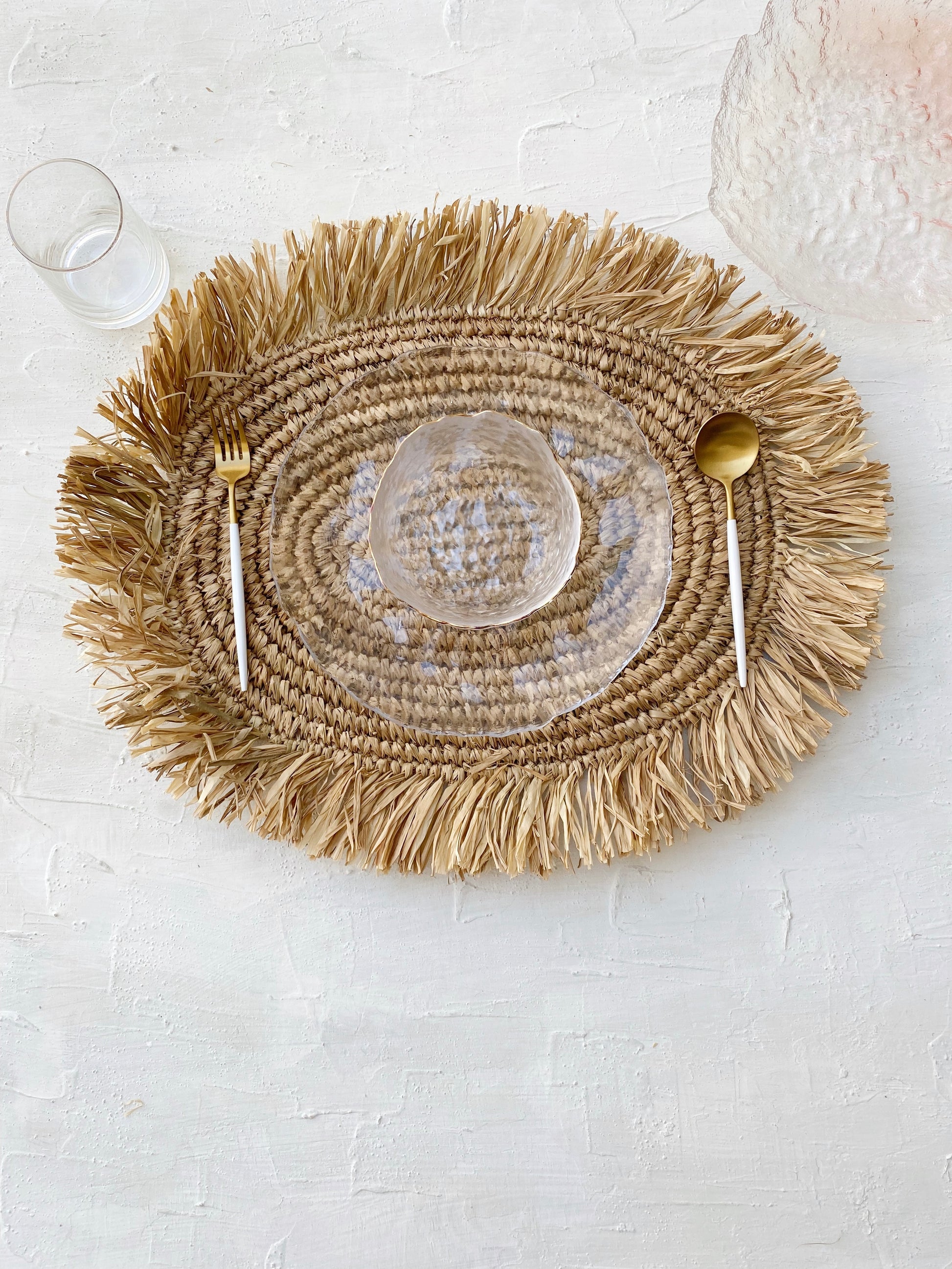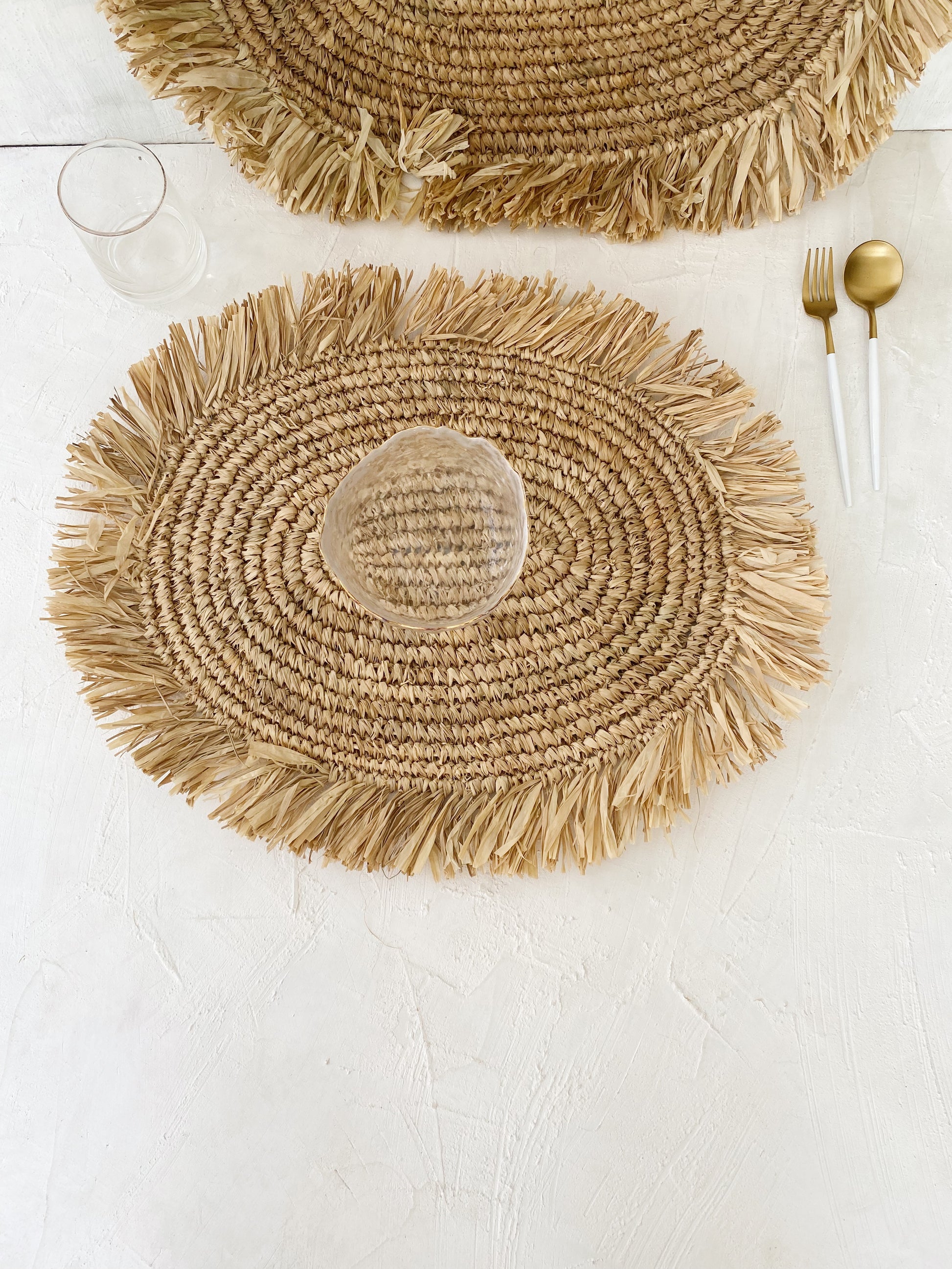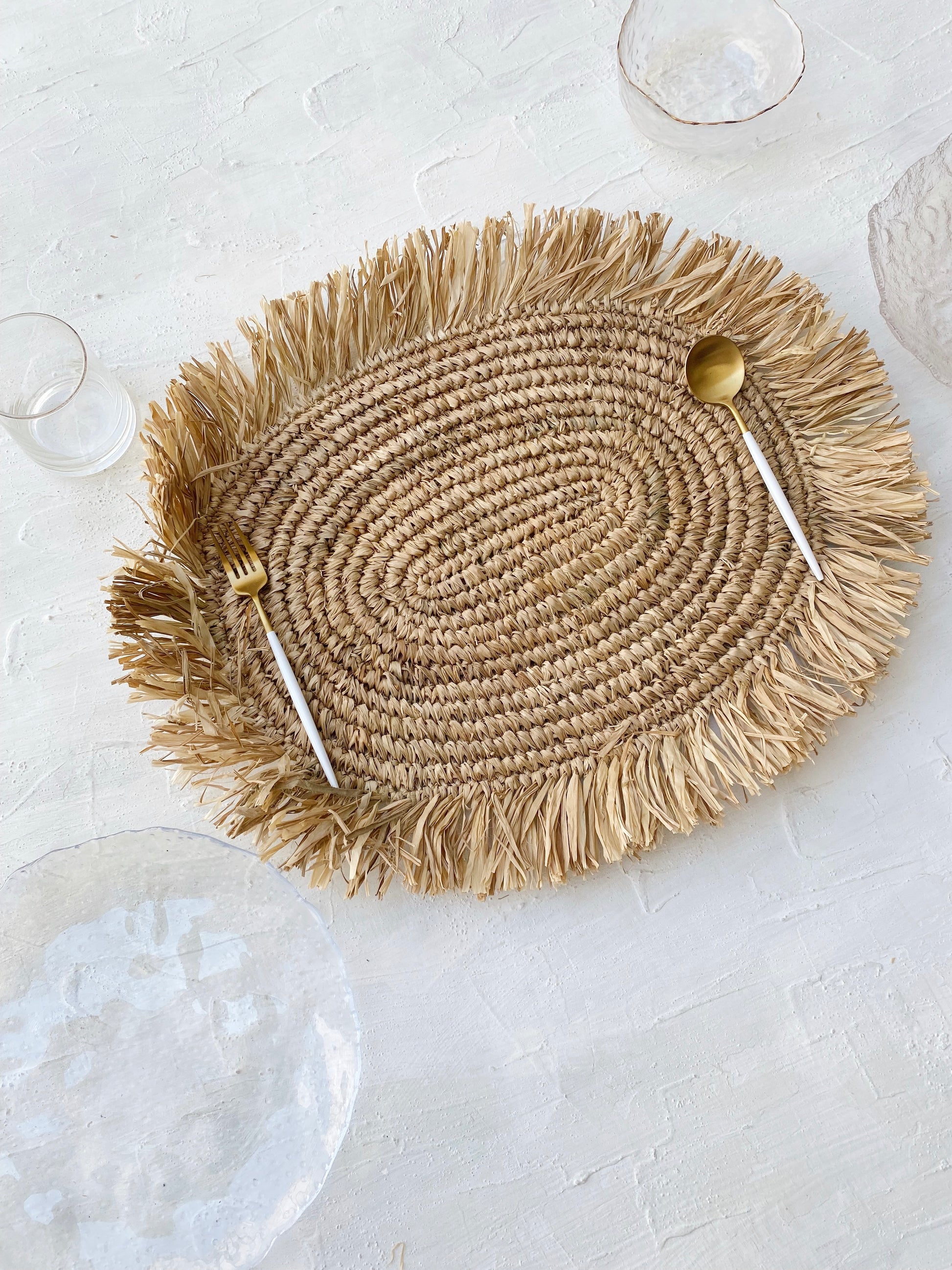 #Oval Raffia Fringe Placemats, Boho Fringe Table Mats, Fringe Placemats, Raffia Placemats & Table Charger, Rustic and Farmhouse Table Scape, Woven Braided Tablemats, Natural Coaster, Hand Woven Placemats, Table decor mats, Wicker Pads, Natural wicker placemats, Mat heat resistant, Braided Tablepad, Decorative hanging wall, Hanging wall decoration, Home Decor, Wall basket, Natural Wall Art, Boho Wall Decor, Rustic Placemat, Event Placemats, Raffia placemats, Braided Table Center, Bali Table Heater