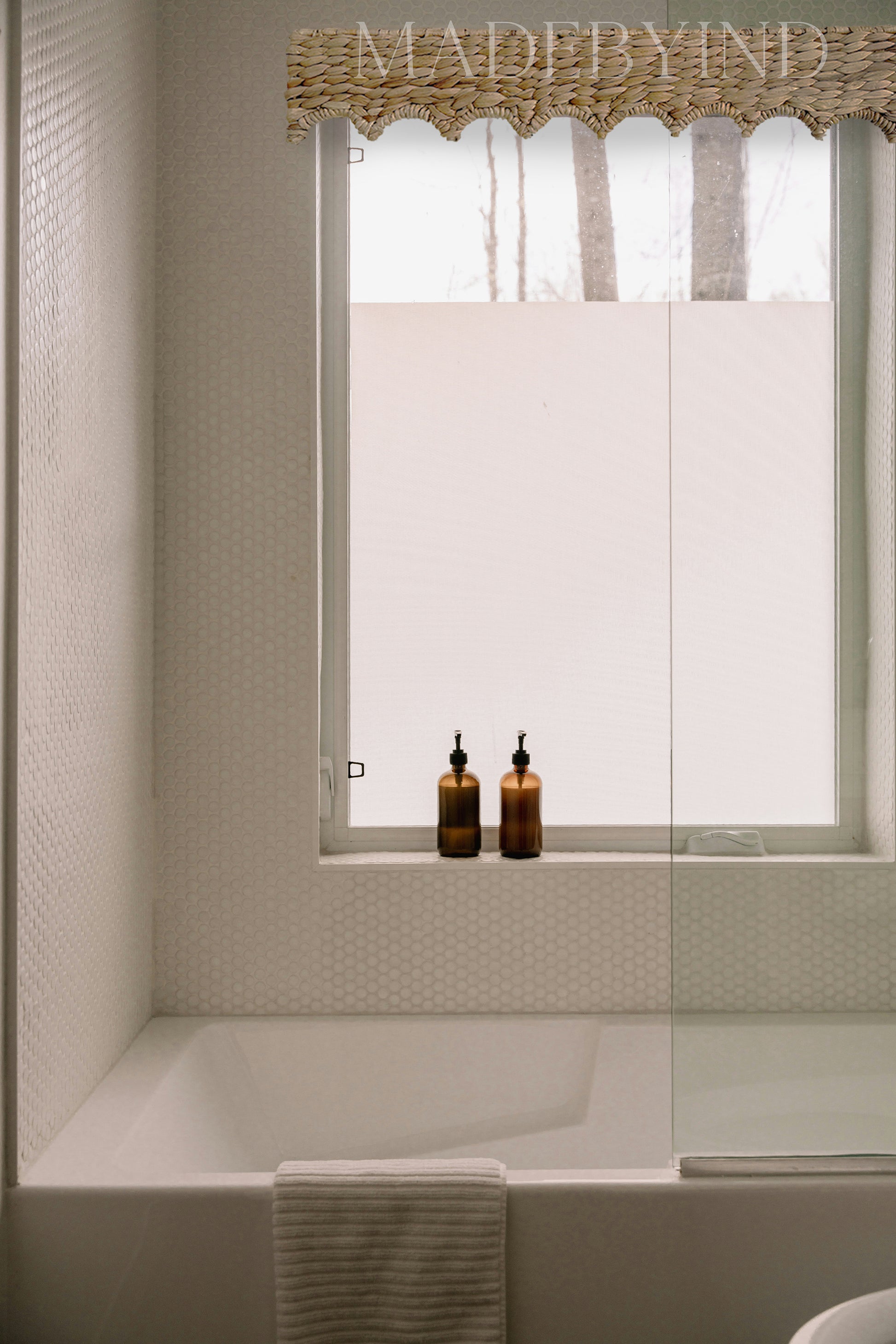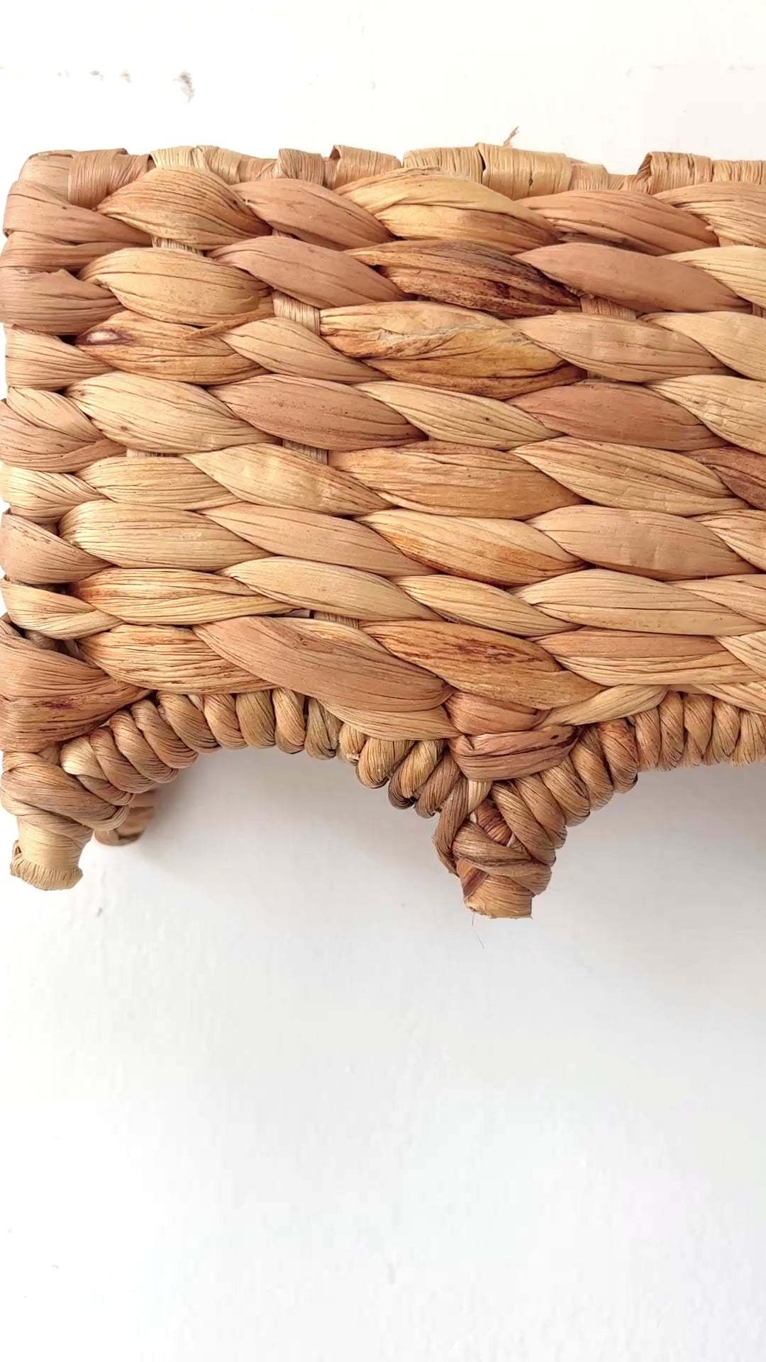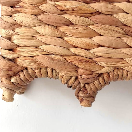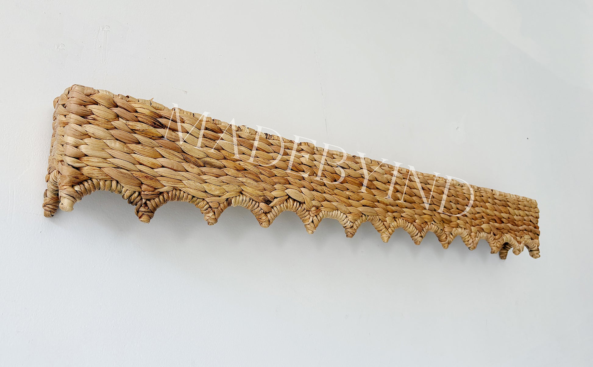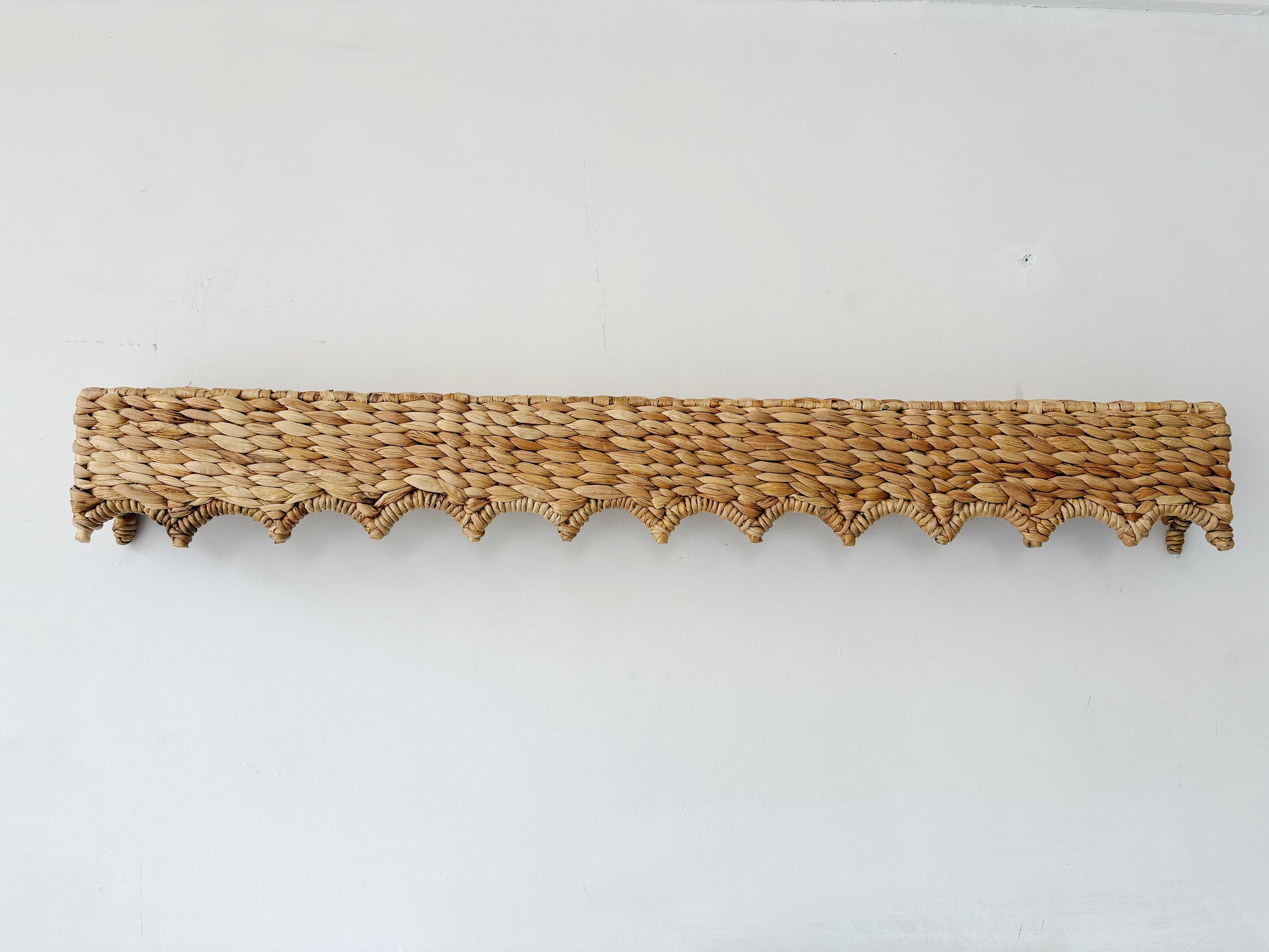 This natural window pelmet is handwoven from water hyacinth and supported by a sturdy metal frame structure. Featuring a wave scallop edge design, it adds warmth, texture, and a handcrafted touch to your space.