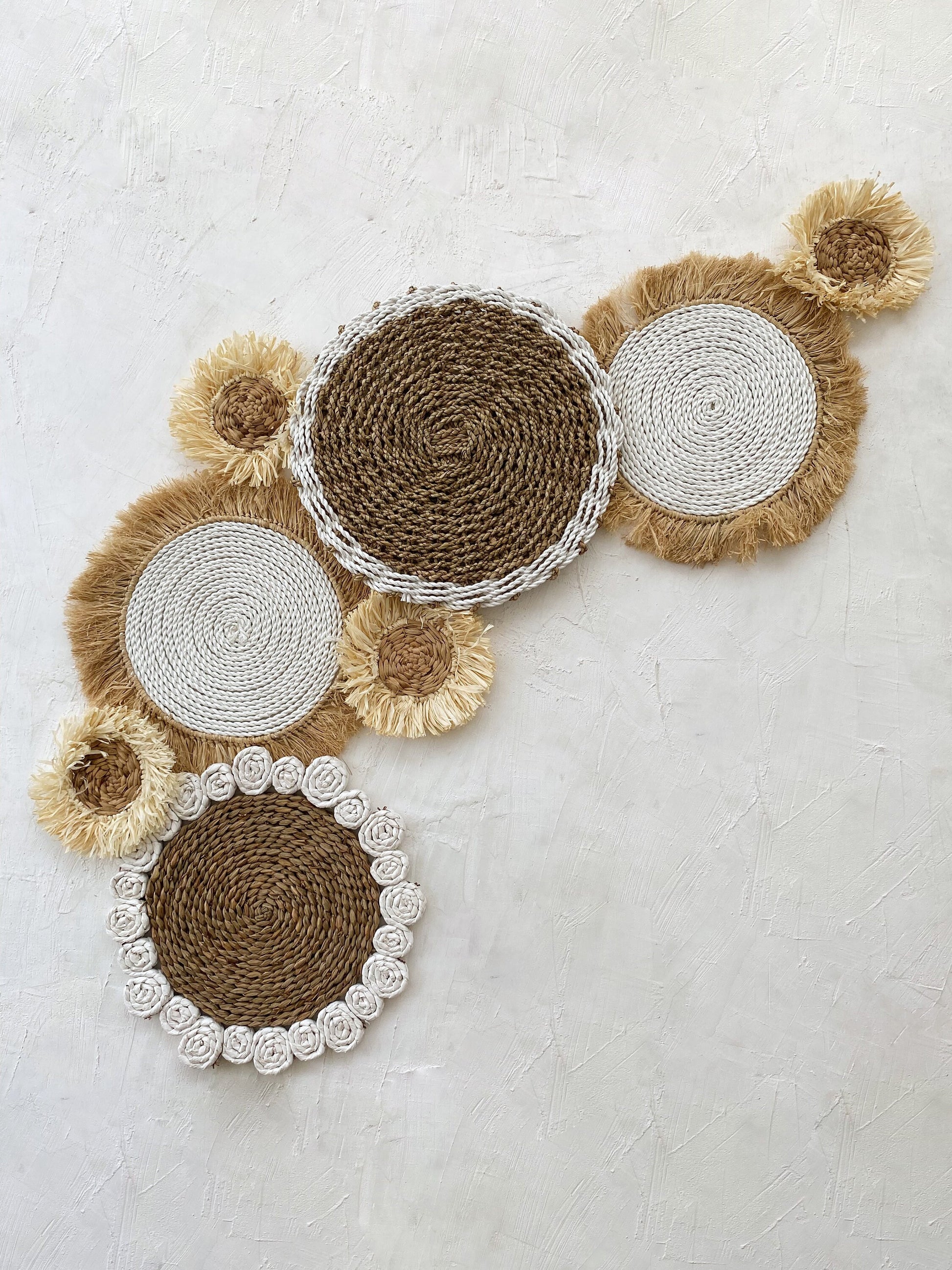 #Set of 8 Boho White Wall Basket with Fringe, Christmas Wall Decor, Natural Wall Decor, Boho Wall Art, Wicker Round Placemats, Bohemian Wall Decor, Seagrass Wall Decor, Bohemian Fringe Wall Decor, Hanging Wall Natural Decor, Fringe Hanging Wall Decor, Boho Decoration, Natural Round Wall Basket, Wall Decoration, Natural Hanging Wall, Bohemian Decoration, Boho Theme, Boho style home, Natural Hand Weave Decoration, Wicker Straw Wall Decor, Natural Decoration, Natural material, Rustic and Eclectic Home Style, Bohemian Rustic Wedding Decor, Natural Wall Basket, Round Wall Decor, Natural Hanging Wall, Set of Wall Basket, Wall Decor Set, Bedroom Wall Basket, Living Room Wall Art, Boho Wall Ornaments Set, Set of Natural Hanging Wall Decoration.