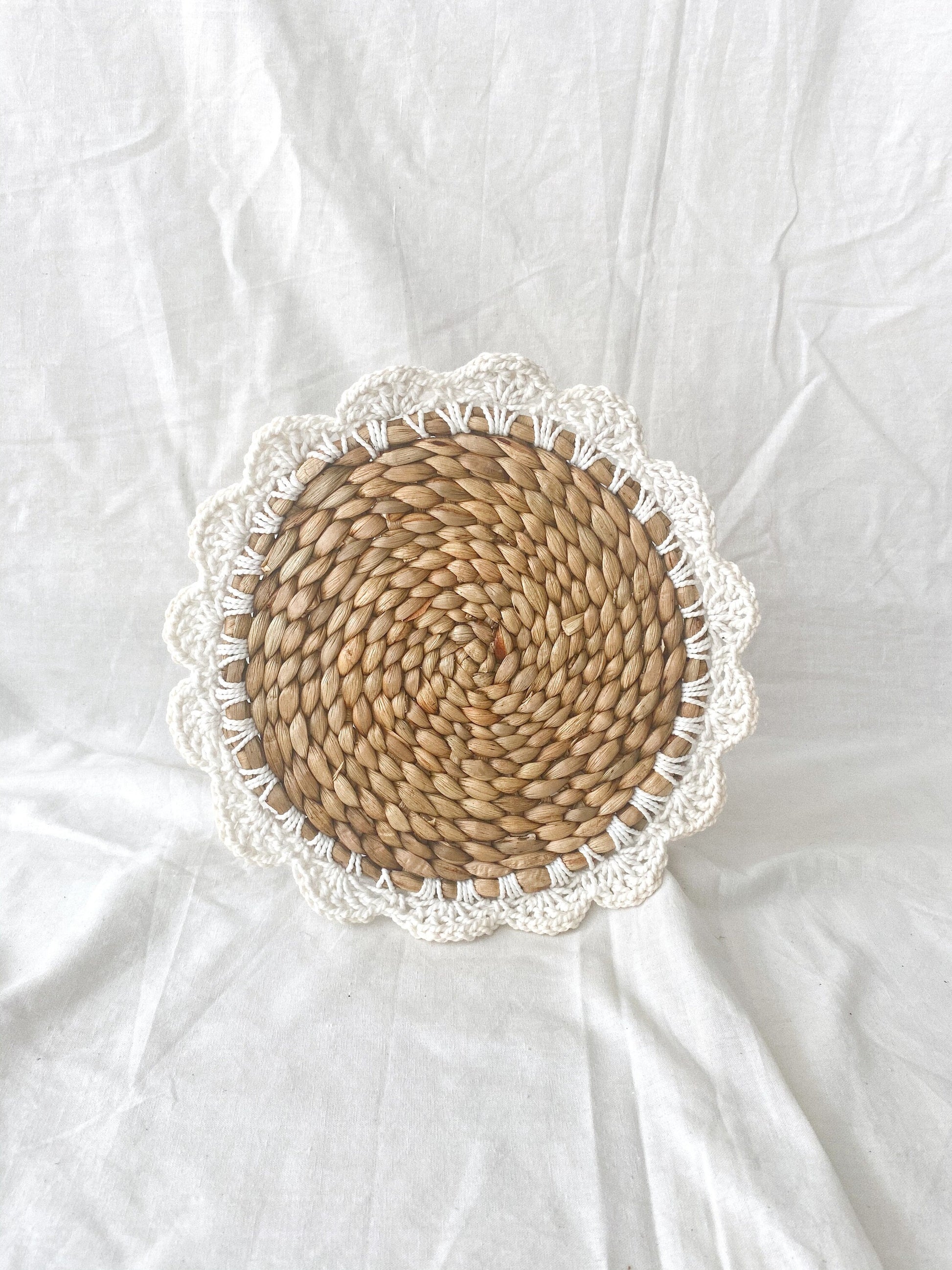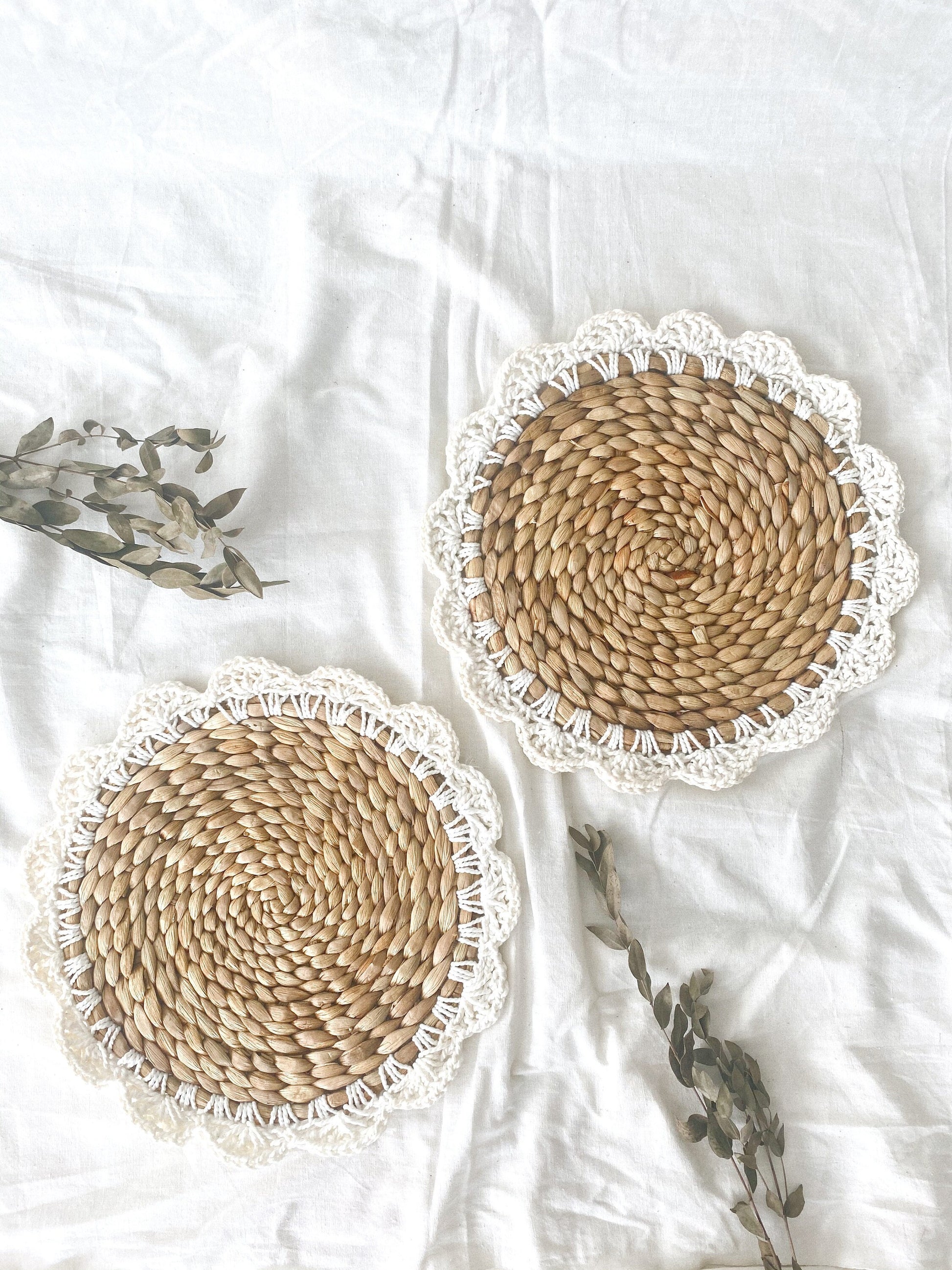 #Water Hyacinth Flowers Macrame Placemats, Boho Placemats, Natural Placemats, Vintage Woven Braided Rattan Table mats, Natural Placemats, Round Placemat, Woven Braided Tablemats, Natural Water Hyacinth, Hand Woven Placemats, Table decor mats, Wicker Pads, Natural wicker placemats, Mat heat resistant, Braided Water Hyacinth Tablepad, Decorative hanging wall, Hanging wall decoration, Home Decor, Wall basket, Natural Wall Art, Boho Wall Decor, Rustic Placemat, Event Placemats, Water Hyacinth placemats, Braided Table Center, Bali Table Heater